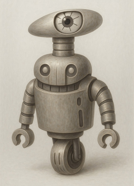 本作に登場するロボット的存在は、監視、移動、操作といった複数の機能を象徴する形態を備えながらも、どこか擬人的な印象を与える。
