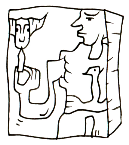 その表面には、無言の人間たちの横顔や、指を立てる手、鳥のかたちをした生きものが浮き彫りとなっており、まるで記憶か神話を封じ込めた記念碑のように佇んでいる。