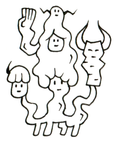 顔ごとに髪型・表情・配置が異なり、それぞれが個別の人格を抱えているかのようだ。