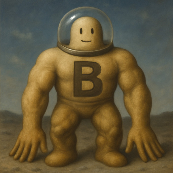 筋骨隆々とした体には、中央に大きな「B」の文字が刻まれ、頭部は透明なガラスドームに包まれている。