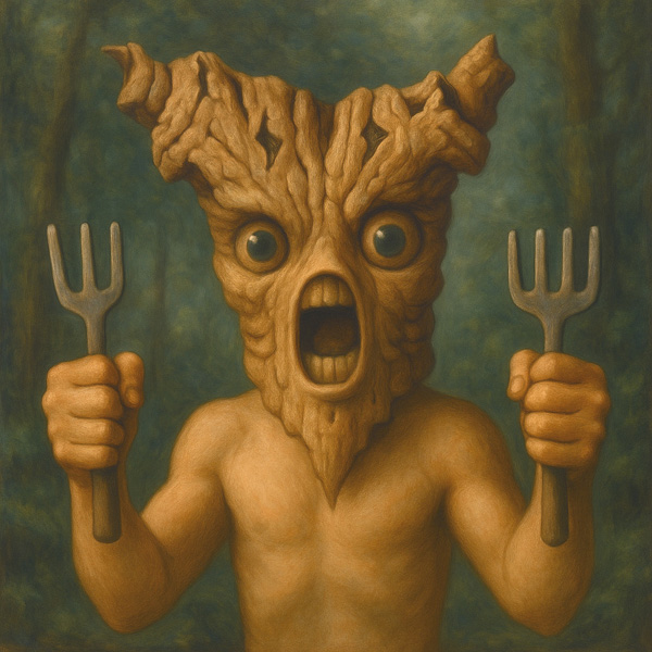木の皮で覆われた頭部を持つ者が、森の静寂を切り裂くように口を開けている。
