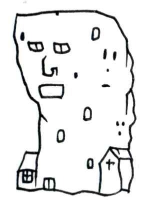 その表面には、まるで眠っているかのような顔が刻まれ、無数の小さな開口部が、岩肌に点在している。
