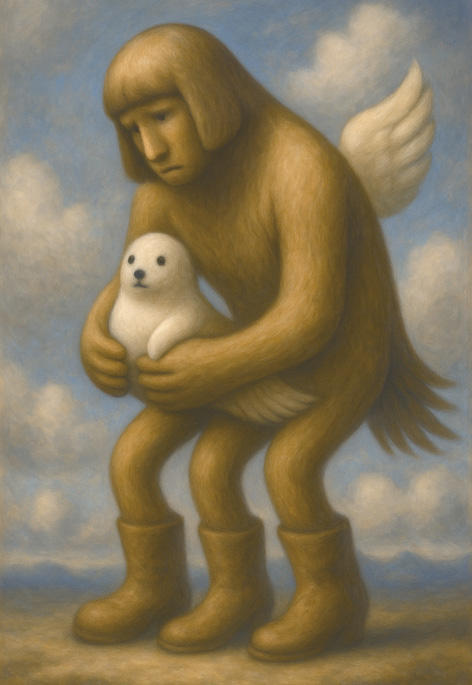 抱かれる存在は、表情を持ちながらも一切の手足を持たず、体温を感じさせない滑らかな塊でしかない。
