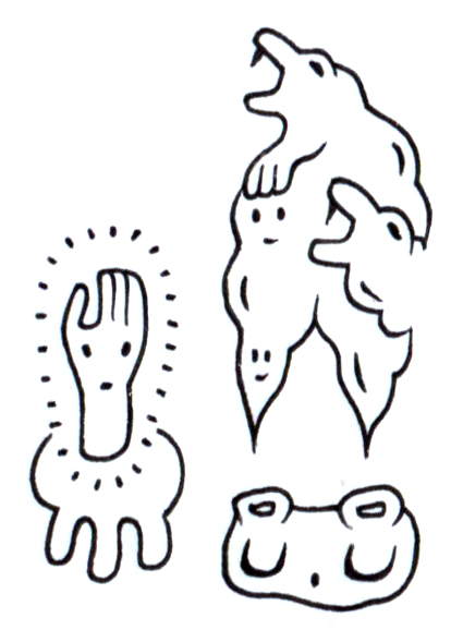 中央上部の複合的な獣の塊は、自己同士がまとわりつき合うかのように1つの躯体に収束し、