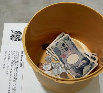 この作品は、集金システム、お金を集める、お金が集まるという現象をアートと考える作品です 鑑賞者が投げ銭や振り込みをすることで集金という現象が成立します