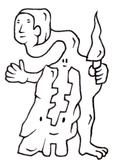頭部が身体から伸びる腕の先にあるという奇妙な構造を持つ存在は、松明を携えてどこかを照らしている。しかしその目線の先には誰もおらず、導かれるべき存在は既に失われたのか、それとも初めから存在しなかったのか。身体の中に埋め込まれたもう一つの笑顔は、どこか自律した意志を感じさせ、外見と内面、あるいは自己と他者の境界が曖昧になっていくさまを象徴している。これは「導くもの」と「導かれるもの」が一体化した、孤独な巡礼者の肖像である。