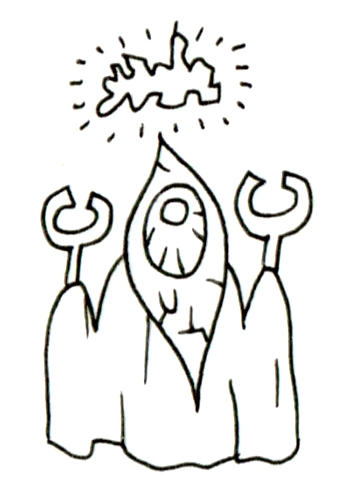 この作品では、「見る」という行為そのものが権威と信仰の中心に据えられており、視線を持つ者=真理の門番として表現されている。