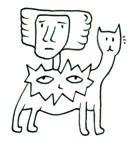猫の身体に三つの顔を宿すこの存在は、人間、猫、そして星型の面貌を同時に携えている。人間の顔は憂いを帯び、星の顔は曖昧な笑みを浮かべ、猫の顔は静かに遠くを見つめる。どの表情も主ではなく、従でもない。