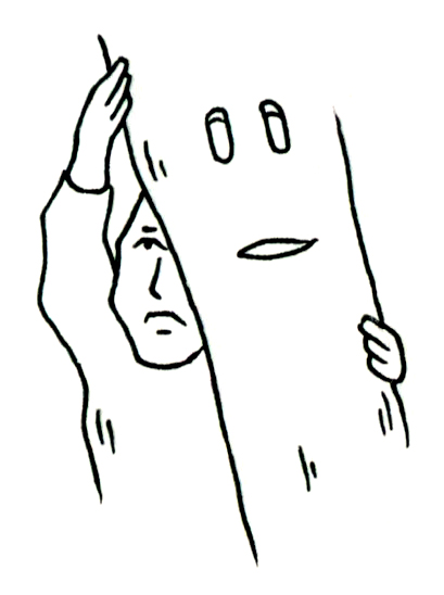 表情を失った男が、無表情な笑顔を浮かべる板をそっと抱きしめている。