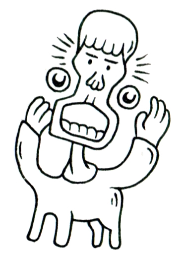 人の顔から裂けるように飛び出した大きな口、左右に外れた眼球、そして四足の胴体。