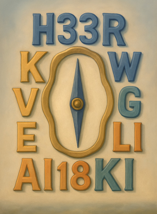 その周囲に配置された無数の文字列と数字は、言語として読むには曖昧で、記号として見るにはあまりに人為的である。